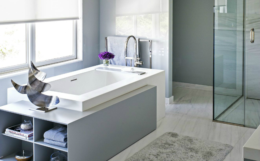 Luxury Bathroom Ideas never looked so good! This bathroom is a unique green beacon of hope, a place to rest and restore one’s strength, an authentic urban oasis to escape the problems of everyday life. From its incredibly unique marble to the view of nature outside the window, this bathroom will turn your precious time of rest into moments of incredibly powerful reflection, and experience for all the senses.