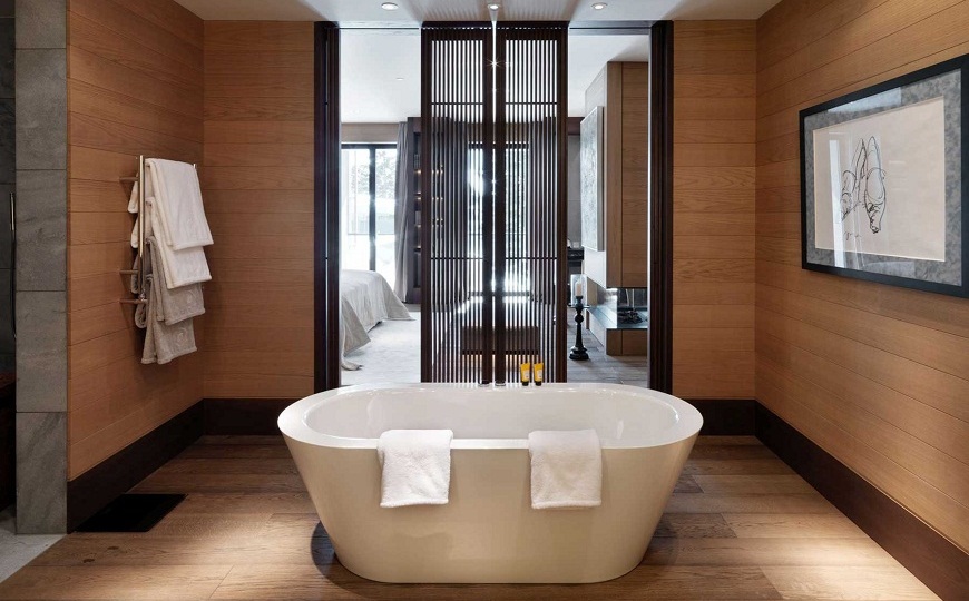 Master Bathroom Ideas can truly shine and generate some magical ambience and the picture above is the perfect proof! From the Eden stone freestandings to the marble floors and the incredible mixture of colors, this is the perfect luxury bathroom idea to admire!